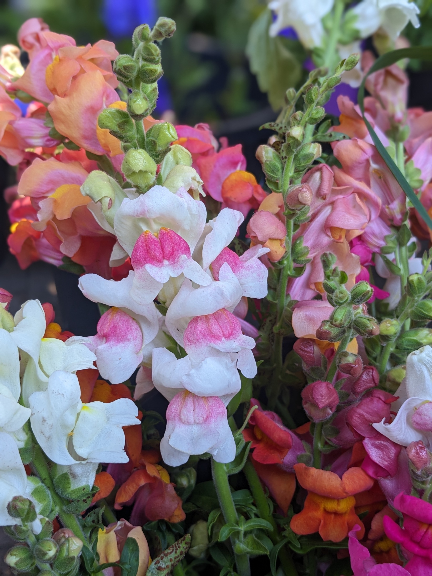 The hardy annuals and biennials we planted last fall and winter (or let self seed) grew strong and plentiful and filled in that gap as we waited for our summer blooms to arrive. Snap dragons, green mist, bells of Ireland, chocolate lace flower, calendula, nigella, sweet peas, dianthus, godetia, foxglove and poppies…lots of poppies!