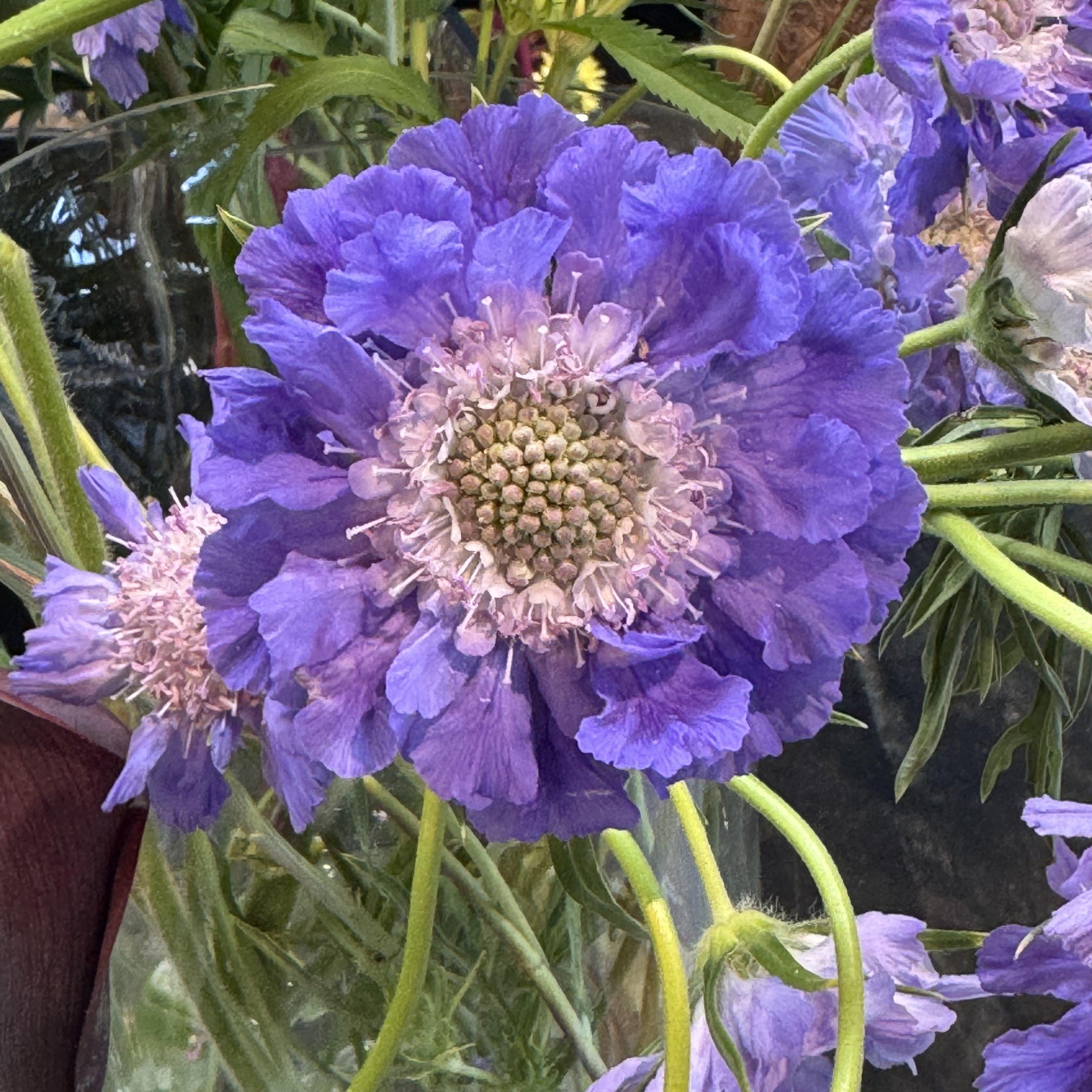 Our summer crops have been productive. I’ve been harvesting oodles of mini and regular gladiolas, scabiosa fama, rudbeckia, yarrow, Verbascum, eupatorium, eryngium, veronica, lady`s mantle, verbena, raspberry greens, mint, delphinium, feverfew, hypericum magic series, scented geranium and more.