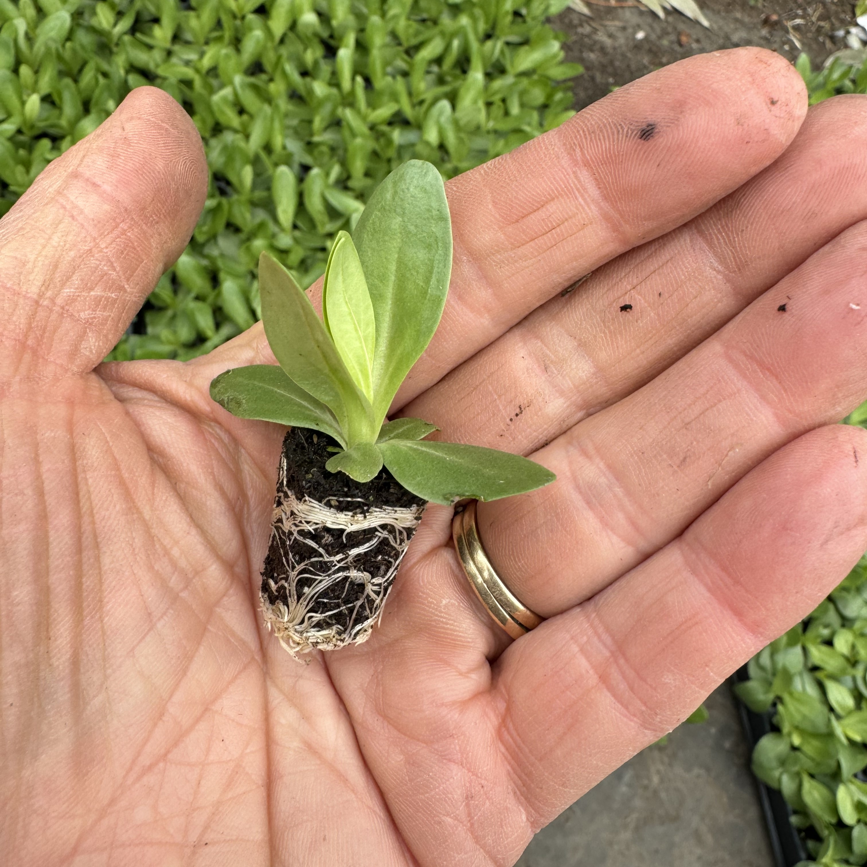 These tiny plugs will be ready to plant in your garden when you pick them up them. They love the cool weather to get their roots established and once the warm weather arrives, they really start to grow. They are each named and have a number 1, 2, or 3, with 1 being the varieties that will bloom first and 3 blooming later in the season.