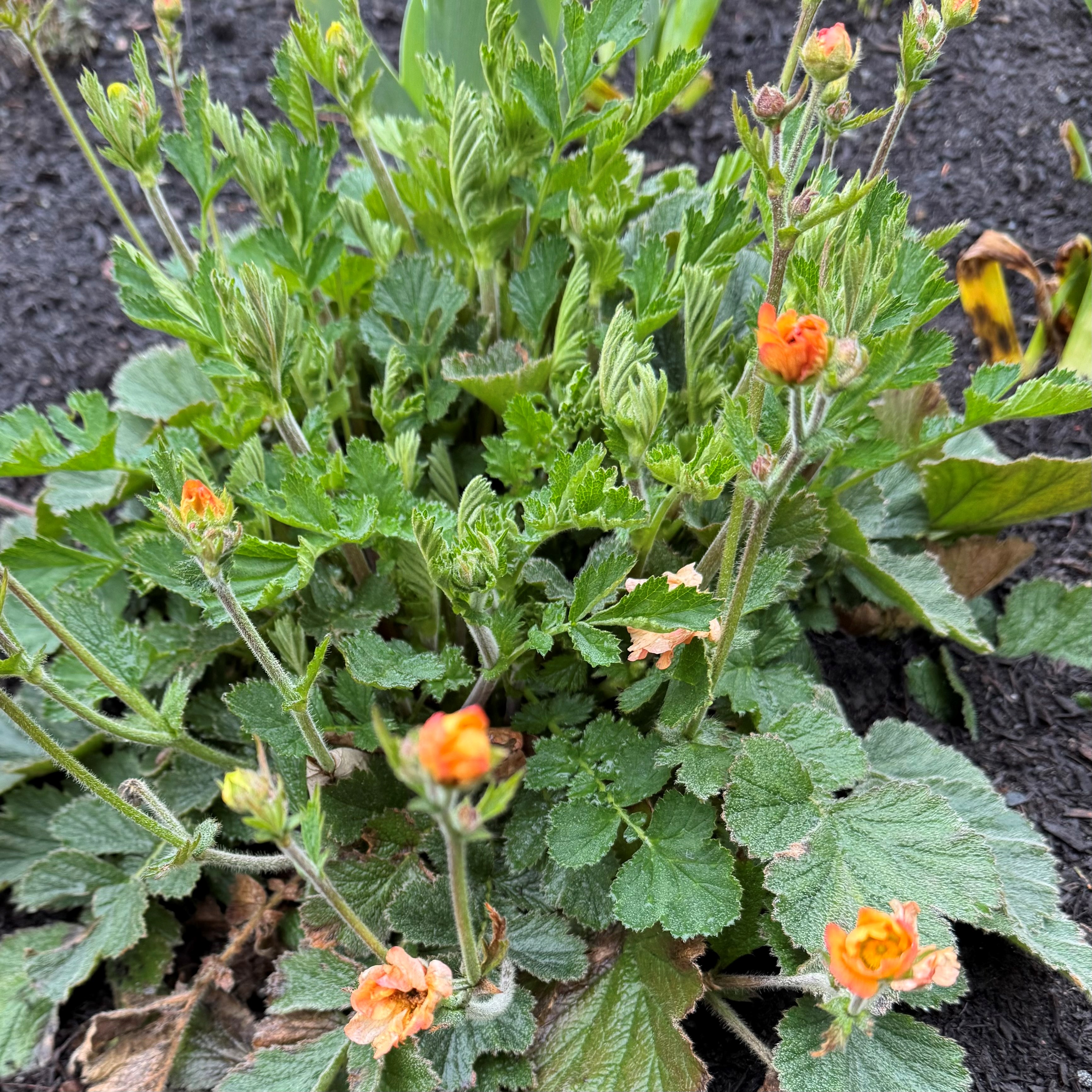 Geum ‘Totally Tangerine’, Thornless blackberries, Hypericum magic – creamy white berries, Scented Geranium. Scabiosa rumelica aka Knautia Macedonia and more to come.