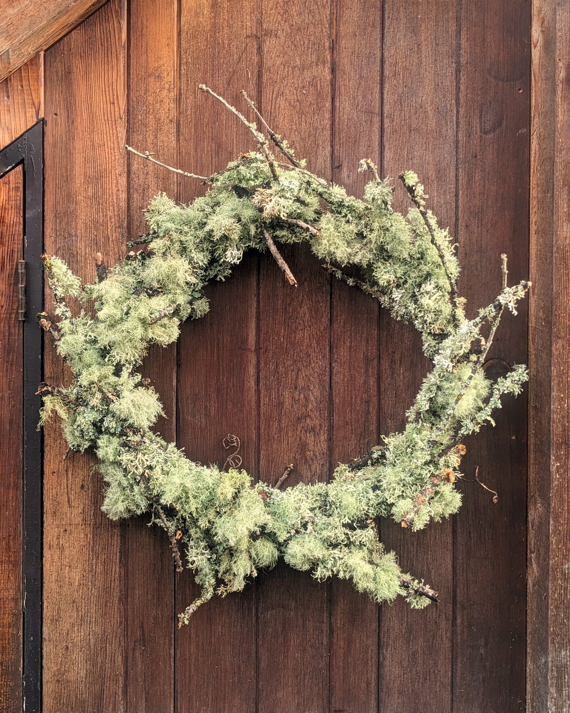 An extra large lichen wreath made from local lichen and Garry Oak branches naturally dropped on the farm. Beautiful for a front door or gate and can be exposed to the elements! Approximately 28" outside diameter. These are ready made and available for local delivery or pickup.
